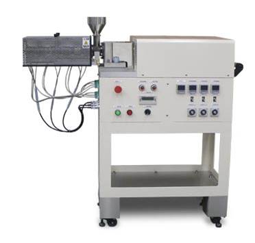 Model : HS 3610 - Single Screw Type - L/D Ratio : 25 - Screw : ¨ª20 mm - Temperature Range : RT ~ 400 ¡É - Revolution : 30 ~ 100 rpm (º¯°æ°¡´É) - Digital P.I.D Temperature Control 3 Point - Heater : 3.3 kW - Water Cooling Type - T-Die Orifice : Diameter ¨ª3mm(Can be change the other¡¯s size) - Dimensions : 1300¡¿400¡¿1140(WDH)mm - Power : AC 220V 60Hz ¨ª3